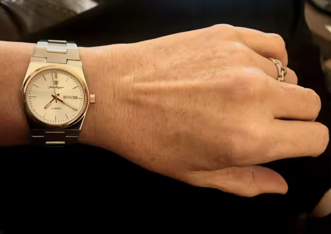 Este reloj utiliza un movimiento analógico japonés de alta precisión, diseñado para ofrecer una medición del tiempo constante y confiable. Su estructura sólida y diseño equilibrado permiten un uso prolongado sin desgaste prematuro, convirtiéndolo en una herramienta diaria, no solo en un accesorio.